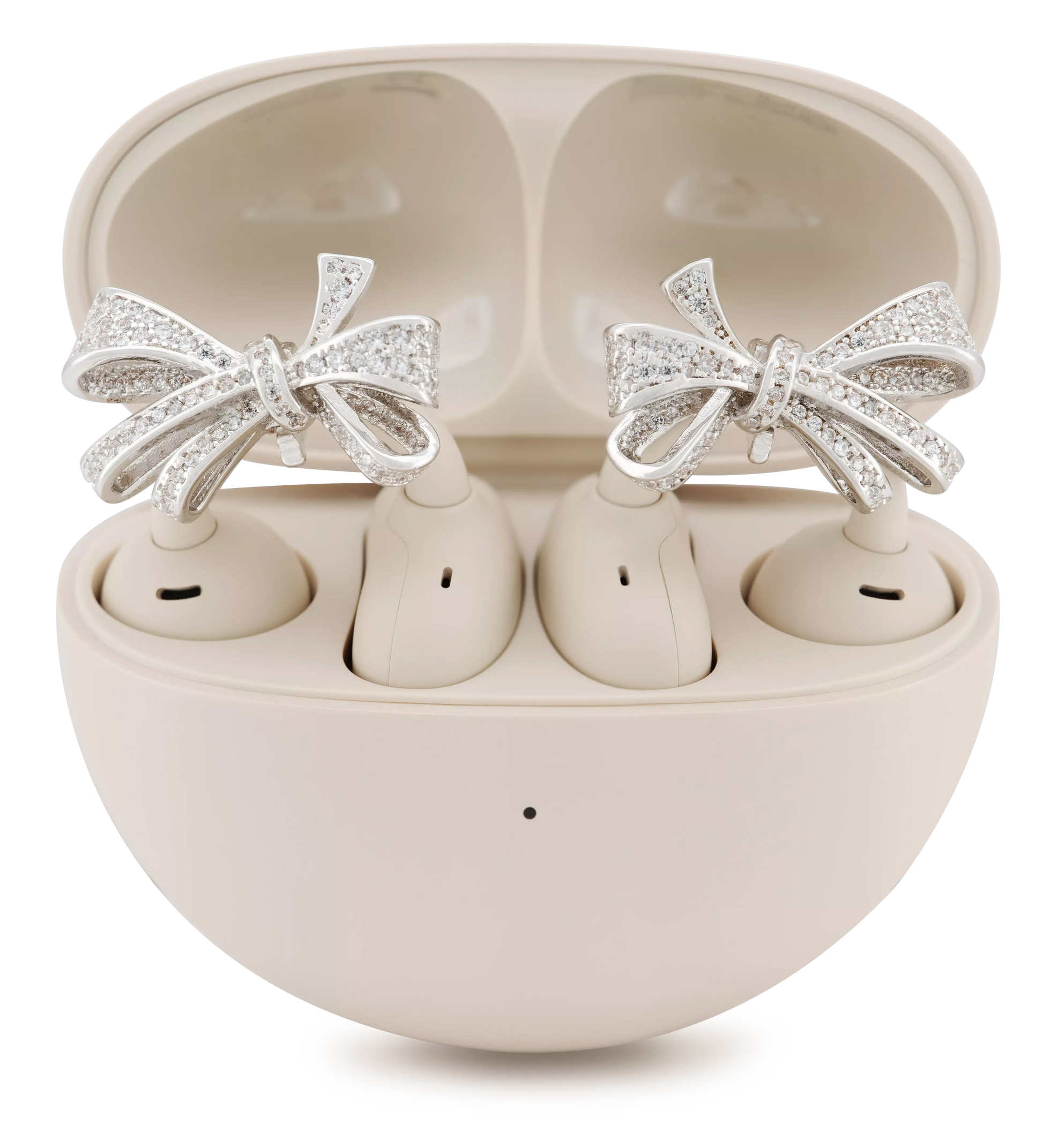 UltraCareX Open Earbud Charms - Bow Diamond Jewelry for HUAWEI FreeClip, Ear-clip earbuds, Clip Earbuds Decorative Accessory, Silver
